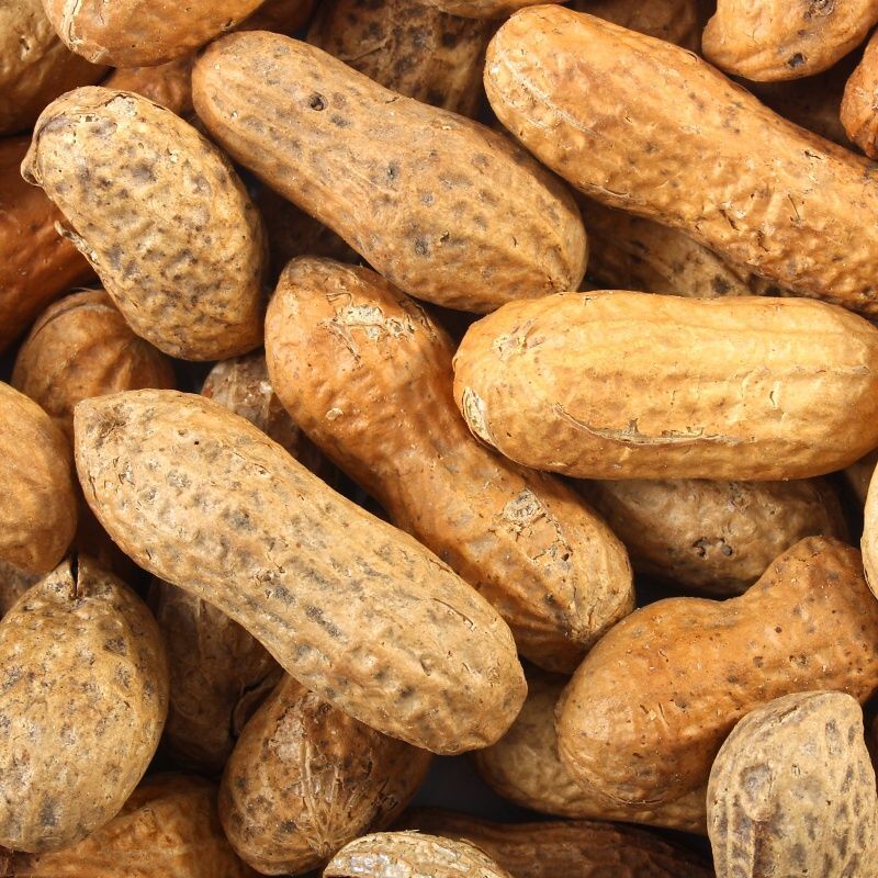 Arašídy nebo burské ořechy ve své přírodní podobě pouze opražené ve slupce.