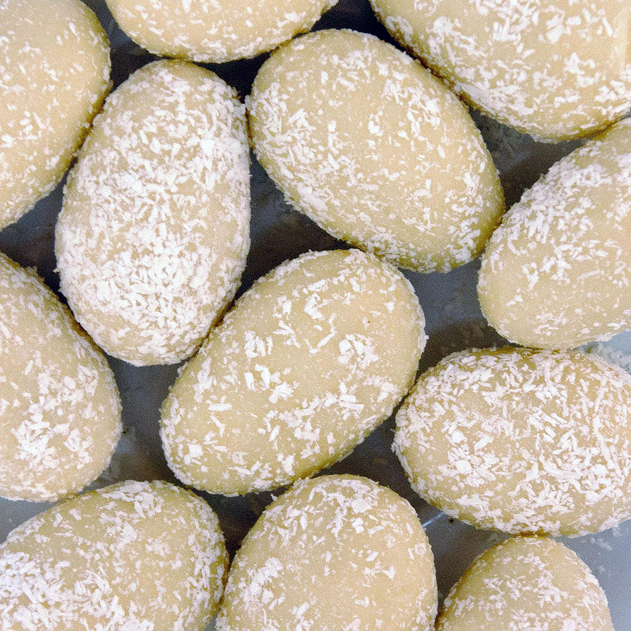 Mandle v bílé čokoládě a kokosuMandle v bílé čokoládě a kokosu