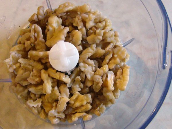 1 Vejce rozklepněte a oddělte žloutky od bílků. Vlašské ořechy spařte vařící vodou, sloupněte a jemně umelte. Nastrouhejte kůru z půlky citronu. Dále utřete máslo do pěny, a pak postupně přidávejte cukr, žloutky, mleté ořechy, skořici a citronovou kůru.