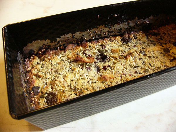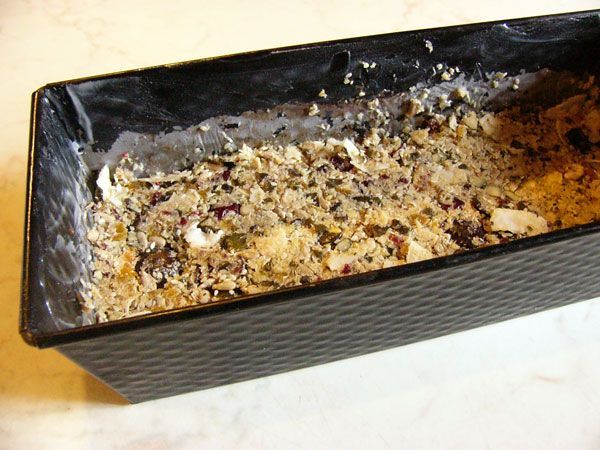 3 V míse smíchejte všechny suché přísady, do toho přidejte směs vejce a vše pořádně promíchejte. Hmotu rovnoměrně vtlačte do chlebíčkové formy.